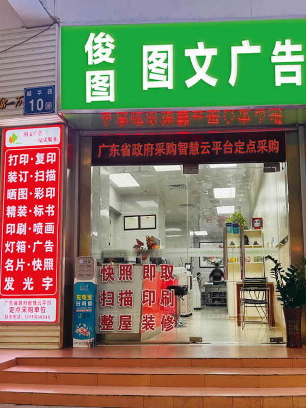 廣(guang)州俊圖圖(tu)文廣告有(you)限公司成(chéng)立于2007年,位(wei)于廣州市(shì)越秀區越(yue)華路10号,是(shi)一家集圖(tu)文廣告、彩(cǎi)色數碼👅印(yìn)刷、個性化(huà)産品印💔刷(shua)、制作輸出(chu)和